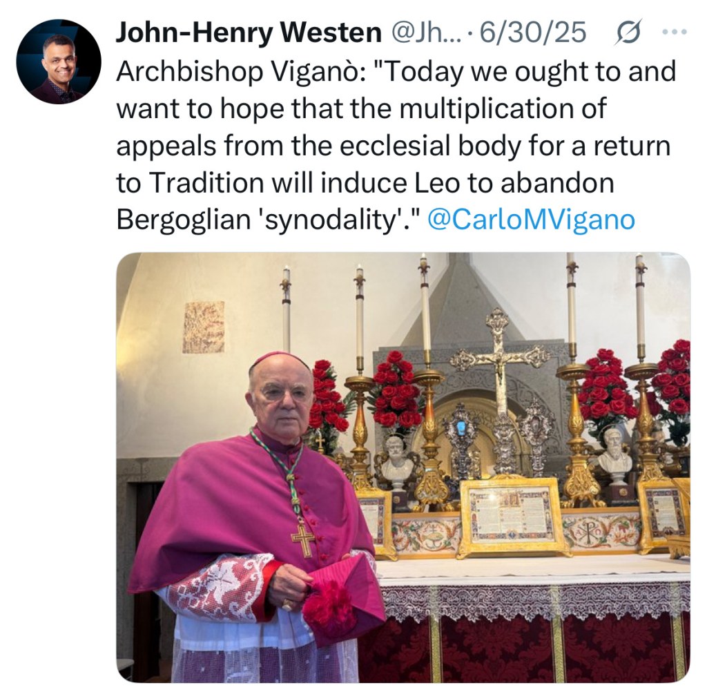 To nie jest tylko korekta kursu, ale kapitulacja. Dwa miesiące temu postacie w całym krajobrazie trad, zwłaszcza Westen, słusznie ostrzegały, że Leon XIV, wówczas kardynał Prevost, był kluczowym graczem w odsunięciu biskupa Stricklanda, człowieka, którego celem było konkretnie opieranie się Traditionis Custodes.