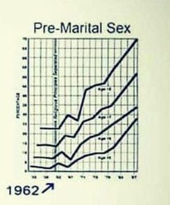 Pierwszy po prawej ukazuje wzrost stosunków przedmałżeńskich (Pre-Marital Sex),