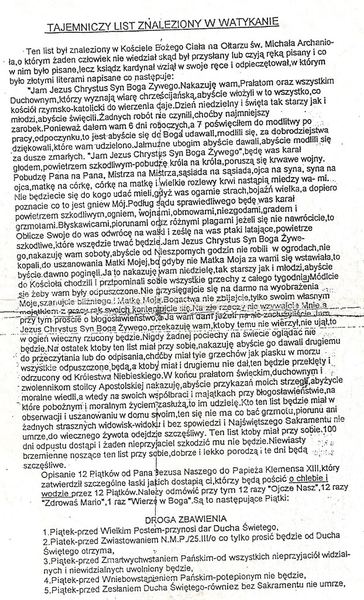 Tekst przypomina rozsyłane kiedyś tzw. łańcuszki św. Antoniego. Autora tego łańcuszka nie sposób dziś namierzyć, jako że liścik znany był już w… średniowieczu („De xii diebus veneris. Clemens Romanus pontifex hanc parabolam invenit in canonibus apostolorum: dies veneris in pane et aqua sunt observandi”) i oczywiście prawem łańcuszka zdążył z tysiąc razy zmienić treść, formę, no i „patrona”, bo pierwotnie autorstwo przypisywano św. Klemensowi Rzymskiemu, papieżowi (zm. ok. 100), a w XIX wieku już Klemensowi XIII.