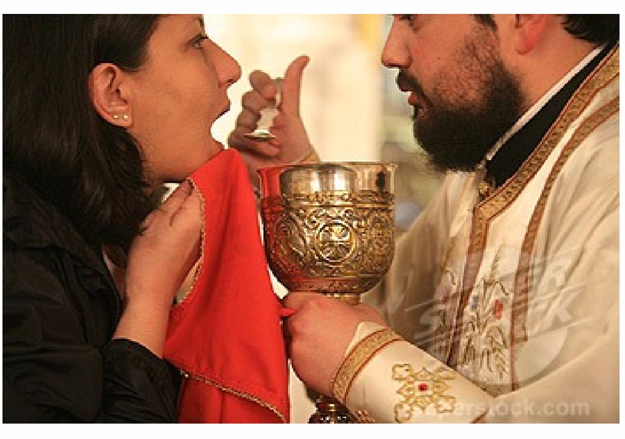 Oczywiście praktykowanie Komunii na rękę było niemożliwe wszędzie tam, gdzie Komunii św. udzielano per intinctionem (czyli z zanurzeniem w Przenajdroższej Krwi), a więc według zwyczaju – odrzuconego przez synod w Braga z 675 r. – który był bardzo rozpowszechniony, zwłaszcza w przypadku Komunii chorych, do tego stopnia, że ostatecznie przyjął się w wielu parafiach. W tej samej epoce rozdzielanie Komunii dokonuje się na Wschodzie zarówno z zanurzeniem, jak z pomocą łyżeczki. [Co wygląda jak na poniższym zdjęciu. Red.]